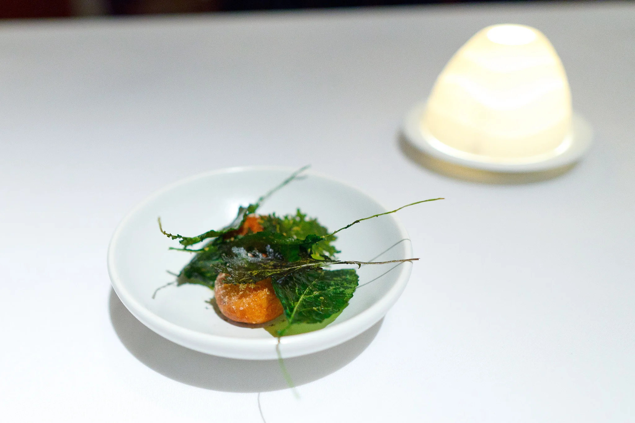 Garden beignets, crispy kale, vinegar powder - Warm beignets counterbalanced with the subtle acidity of the vinegar powder. The crispy kale added a vegetal bitterness. This was a small arrangement of textures all held together by the leafy green taste of the garden.