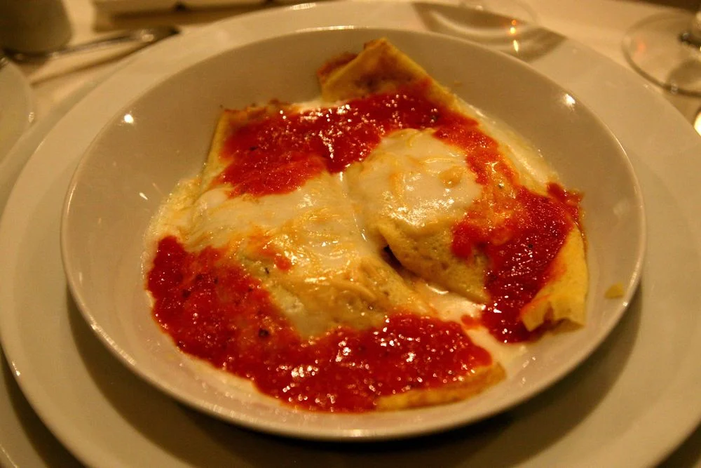 What an aesthetically beautiful restaurant. Rather than eating in a large room, the restaurant was segmented off into smaller rooms which, combined with the natural woods, large shuttered windows, and comfortable living-room chairs, almost felt like eating in a nice country house. There was a bit of coldness, though, from the white walls and marble floor ... but nothing too bad, just enough to remind you that this was indeed a restaurant. The lighting was also very bright -- no candlelight here!I started this meal at the hands of our waiter who recommended the empanada special of the day. This was a mistake. The dish was less like empanada, and more like an egg white omelet with tomato sauce as can be seen in the picture. Then again, what was I doing ordering an empanada in an Italian-esque restaurant? But still, as my friend says, a menu should not be a minefield and there should be no such thing as ordering wrong. My main was the pasta special of the day: Cappelletti san martino y Oreccheitte. This was a little better; but, still nothing spectacular. The pasta albeit fresh, was way over cooked. The tomato sauce, which I'd previously experienced with my essence of empanada, was a little bland ... undersalted, I think.