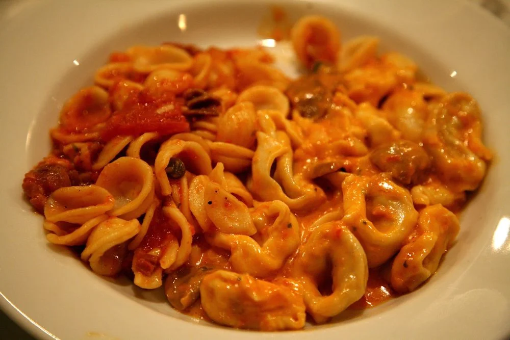 Cappelletti san martino y Oreccheitte amatriciana, salsa de cebolla, panceta, tomate un poco picante