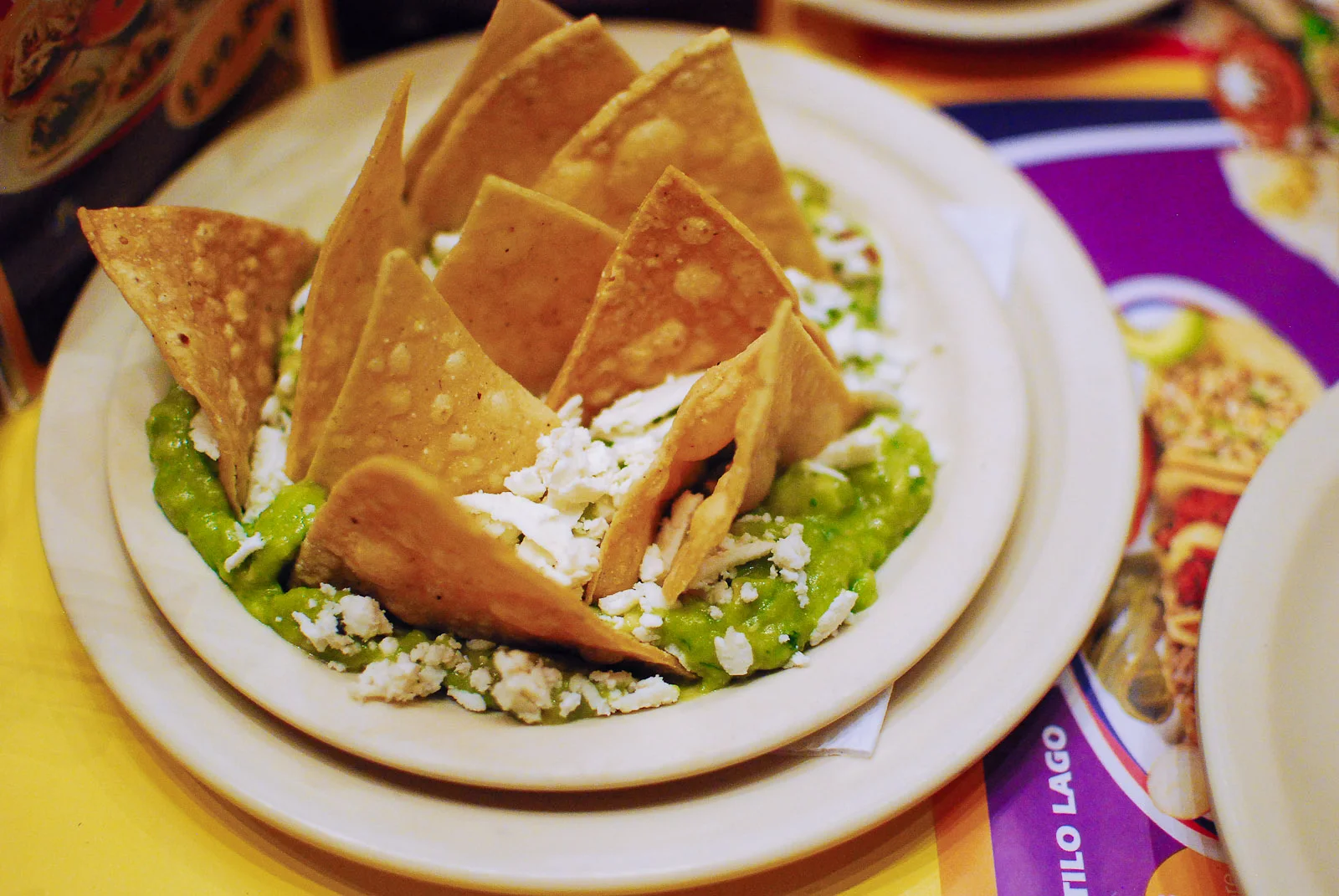 Guacamole con Totopos y Queso Fresco - This was the first time I witnessed a Mexican family ordering guacamole at the table. Maybe they did it because of me, but I had to rub my eyes and double check. As much as I love thick guacamole and always want to order it, my girlfriend insists that the chunky guacamole served in the states is simply not Mexican.