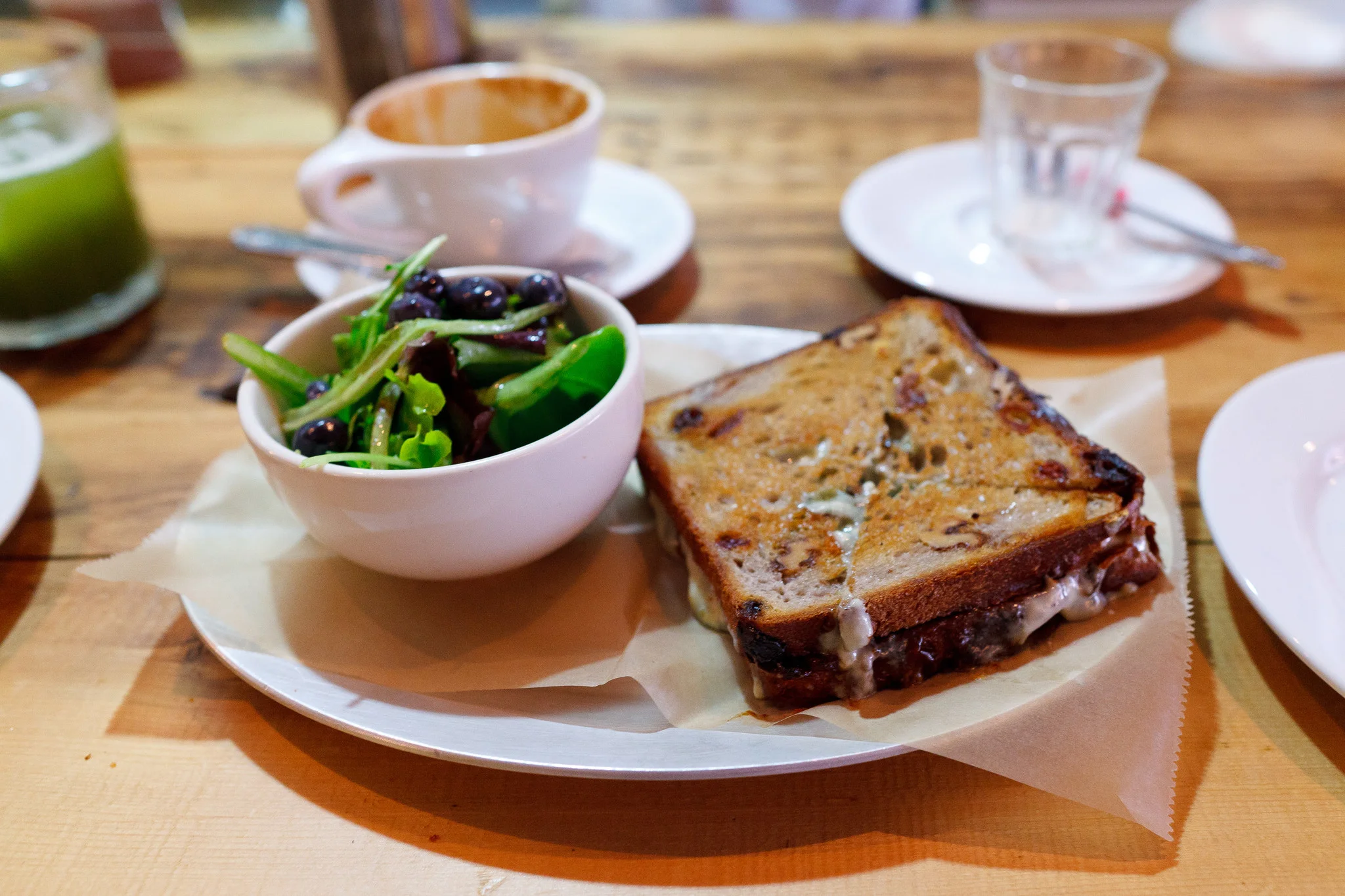 When talking with Ben, one quickly discovers his insatiable curiosity as he speaks enthusiastically about how he plans to tinker with this and toy with that; he's always thinking of something new and exciting. This explains the Queens Kickshaw being the first shop in New York -- and perhaps the country -- to serve cold brew coffee on tap. It explains the constantly changing rotation of artisanal beers and the ever changing single-origin beans in the grinder. It also explains the experimental dishes behind the counter, such as house-fermented berries used to make fruit shrubs. What really makes the Queens Kickshaw special is its juxtaposition of three seemingly different foods: coffee, beer, and grilled cheese. Only when they are under one roof in a shop open most of the day and night does the combination make sense.