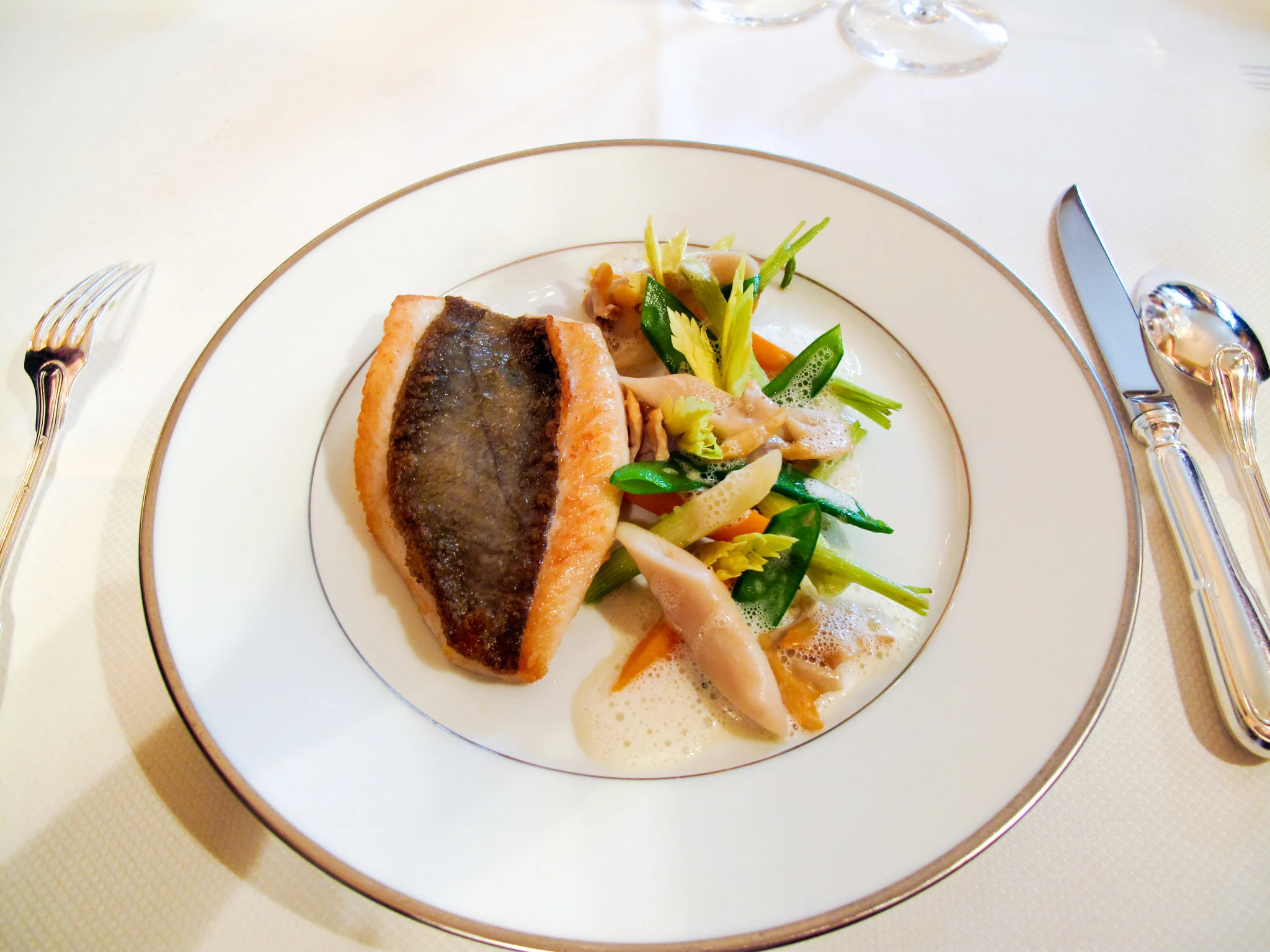 Dos de saint-pierre poele, maraichere de coquillages a la citronnelle - Potentially the lightest fish dish on the restaurant's menu. A lightly seared filet of John Dory served with sauteed vegetables and lemongrass.