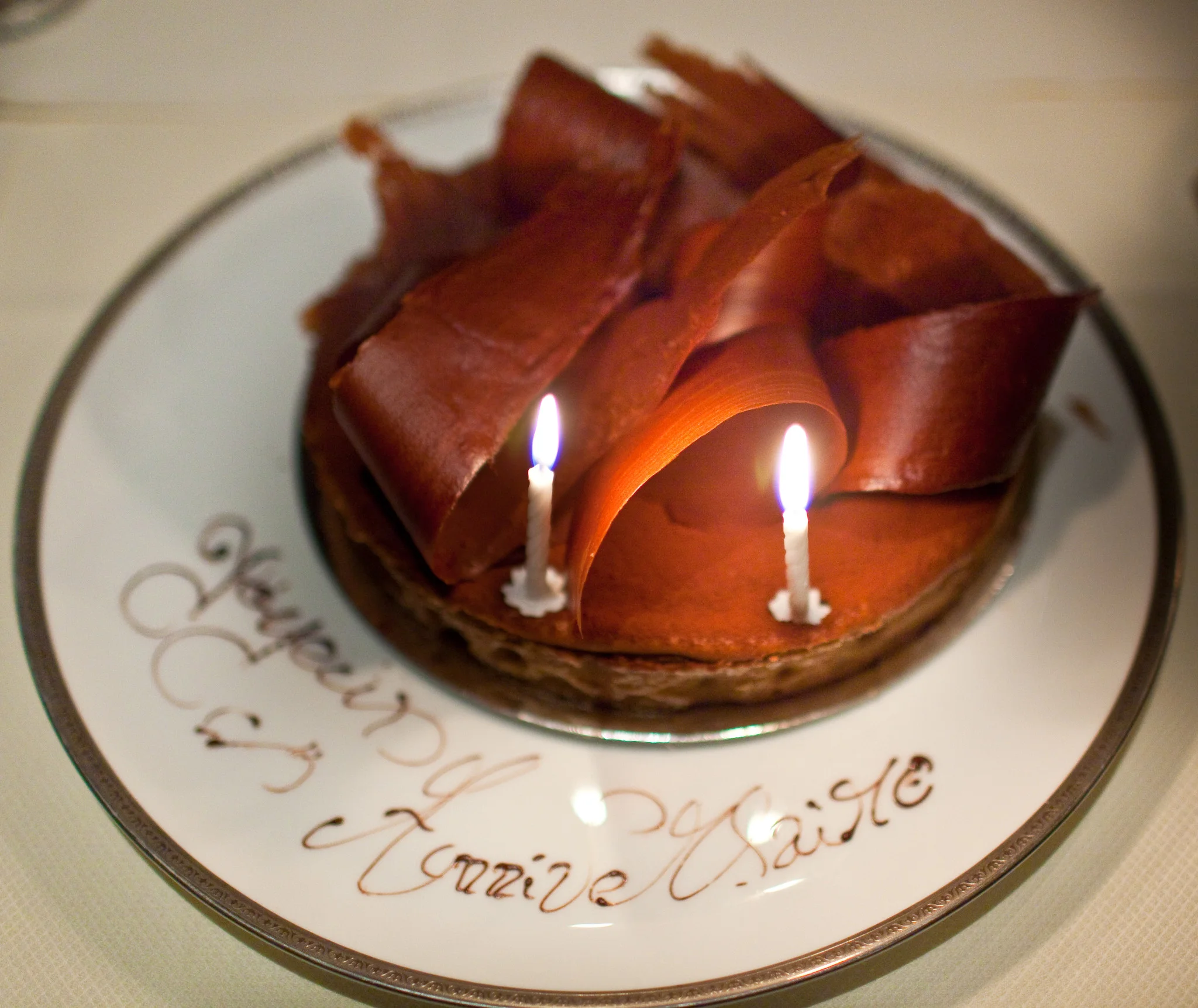 Joyeux Anniversaire: Flourless Chocolate Tart with Vanilla Ice Cream