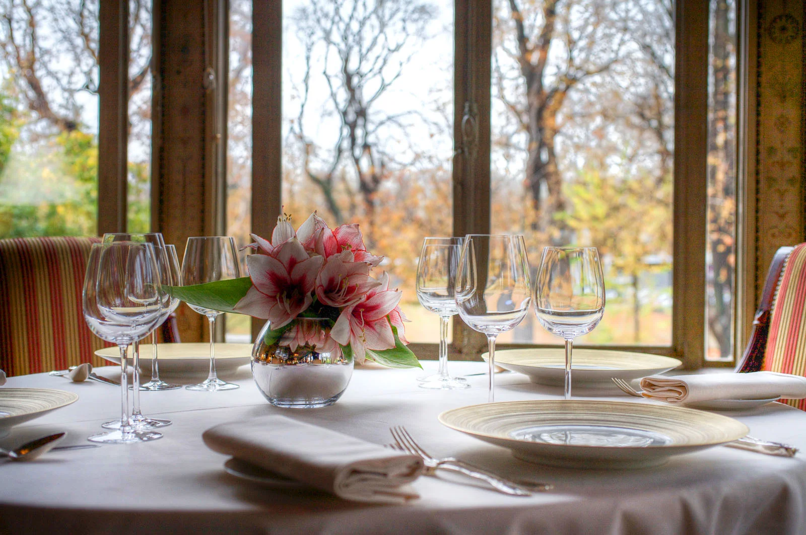 The restaurant itself is located in the Pavillion Ledoyen just off the Champs Élysées in Paris' 8th arrondissement. Being on the second floor, the restaurant has an incredible view of the Petit Palais and the surrounding park. I went towards the end of fall, which meant I was surrounded by uncountable trees of yellow, red, and orange leaves; the foliage was stunning. The floor to ceiling windows certainly helped. There were no crystal chandeliers, baroque paintings or gold-leafed molding here. The dining room was classic and understated, formal yet full of daylight. I sat in the corner with a bird's eye view of both the restaurant and the changing of seasons around me.