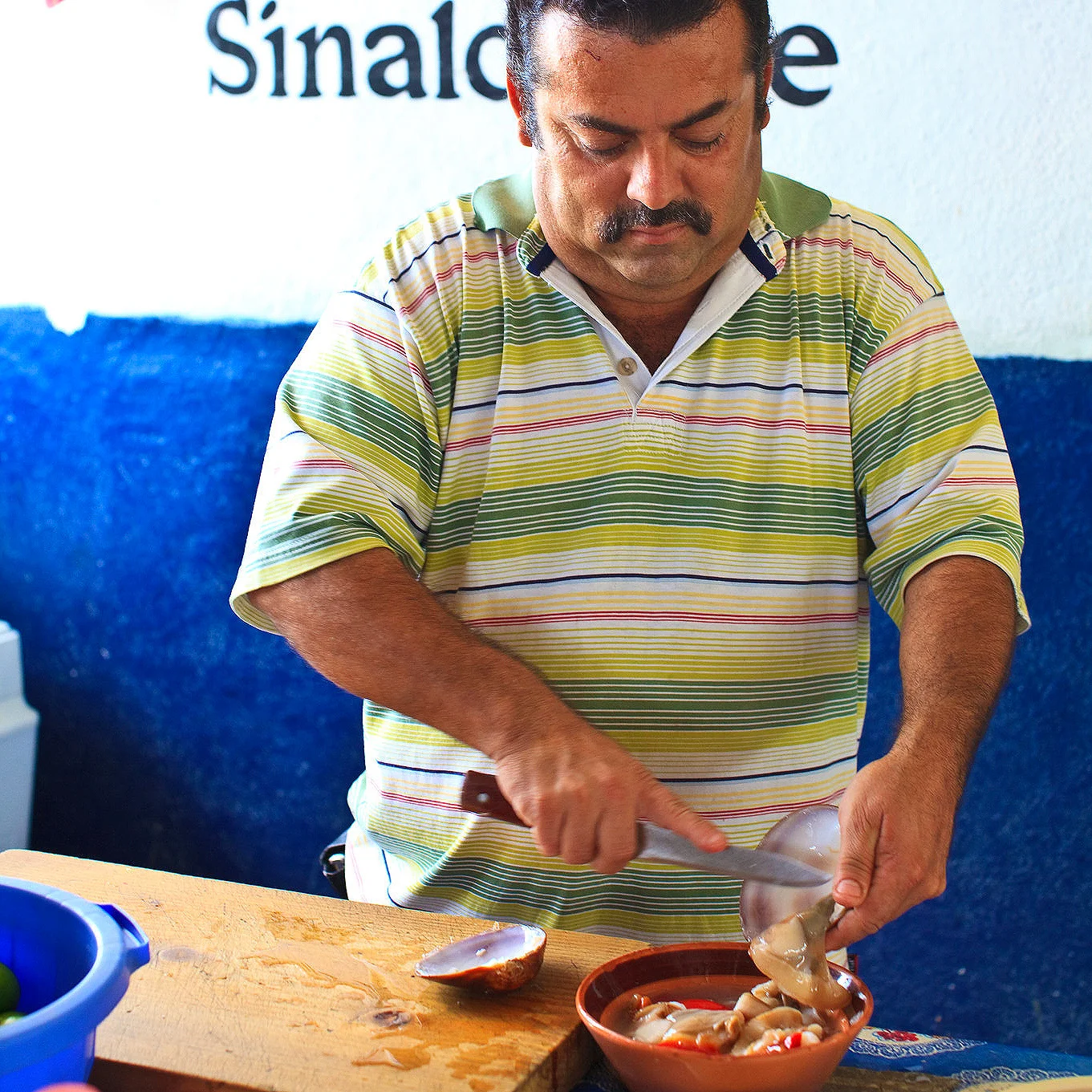 Mariscos el Sinaloense, San Jose del Cabo - Chef preparing almejas chocolatas