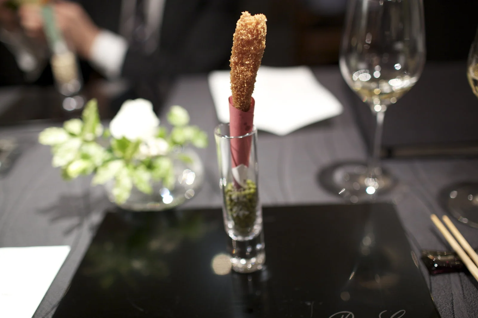 Wine pairings for the night: - Arbois, Grand Elevage Vieilles Vignes 2006 - Mersault Vieilles Vignes 2006 - Pinot Blanc Vin d'Alsace Domaine Weinbach 1999 - Maison Louis Jadot & Domaine Ladoix 1999 - Clos Windsbuhl Gewurtztraminer 2005