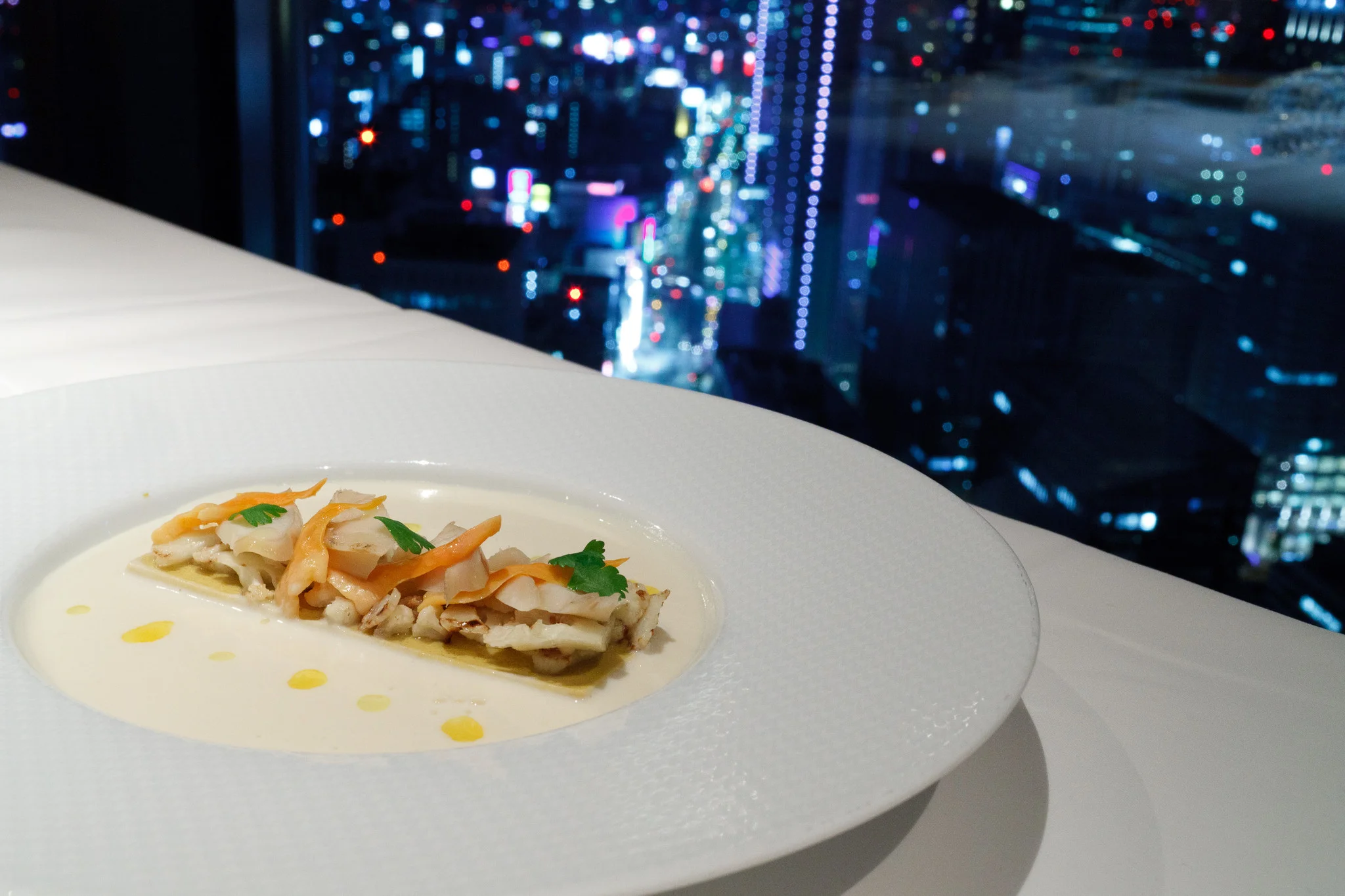 Signature is the home of chef Olivier Rodriguez who formerly worked at the Tokyo location of Enoteca Pinchiorri. His menu read straightforward with two tasting menus and an à la carte section. The tasting menu seemed like a little much since my body still thought it was seven in the morning. So we ordered a few of dishes from the à la carte section and decided to split them. Well, maybe we ordered a lot of dishes. The exorbitant prices are justified (somewhat) by the exquisite view. We were lucky enough to have a window table, and maybe it was the jetlag but I felt like I was eating on the edge of a cliff. My eyes were in awe of the view: thousands of red lights flickering atop the Tokyo skyline.