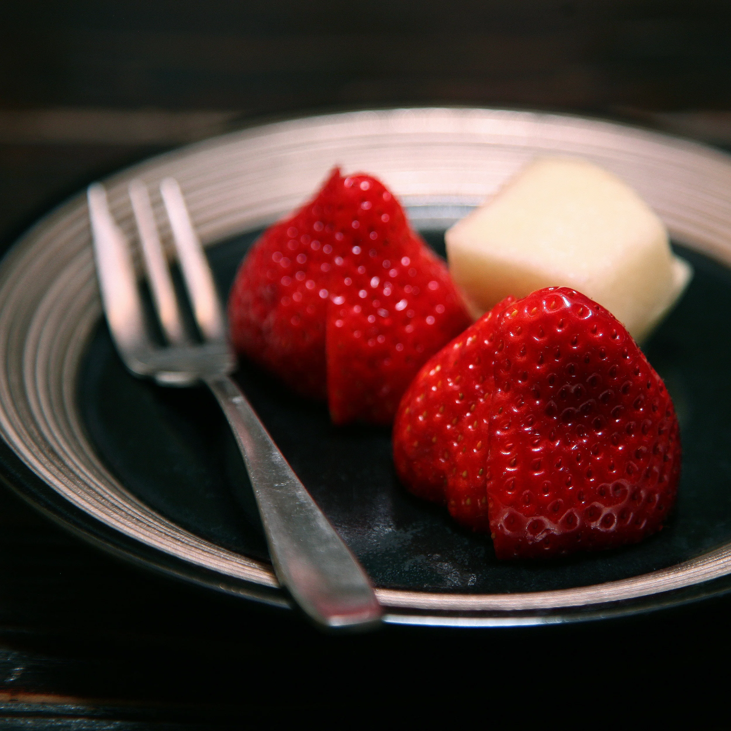 Fresh strawberries and melon - One of the marvels of Japanese cuisine is the inherent understanding of diminishing returns: the enjoyment of each course decreases with fullness. I hate leaving a restaurant feeling full, sick, and overall worse than when I arrived. With most Western tasting menus, I feel great up until the sweet dessert courses -- which at many places occupy nearly half the menu -- and it's these courses that push me over the edge of comfort. Our meal finished with two incredibly sweet strawberries and a small wedge of melon.